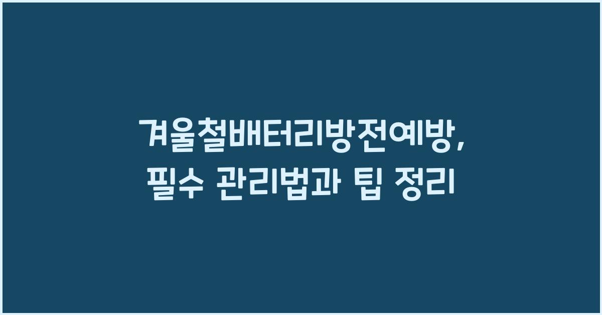 찬 바람이 불고 눈이 내리기 시작하면, 우리는 따뜻한 오두막으로 피신하고 싶어집니다. 하지만 이처럼 따뜻함을 찾는 것과는 대조적으로, 자동차 배터리는 겨울철에 큰 위기를 맞이합니다. 겨울철배터리방전예방을 위해 일을 미리 챙기는 것이 무엇보다 중요합니다. 오늘은 겨울철에 배터리가 방전되지 않도록 하기 위한 필수 관리법과 팁을 5가지 소개하겠습니다. 이 글을 통해 여러분의 소중한 자동차를 안심하고 지킬 수 있는 방법을 알아보도록 하겠습니다.1. 배터리 점검과 청소가장 먼저 해야할 일은 배터리를 점검하고 청소하는 것입니다. 겨울철배터리방전예방의 첫 걸음은 배터리 상태를 확인하는 것이기 때문입니다. 극성이 맞는지, 단자가 부식되었는지, 전압이 정상인지를 체크해야 합니다. 배터리의 단자 연결 부분에 부식물이 생겼..